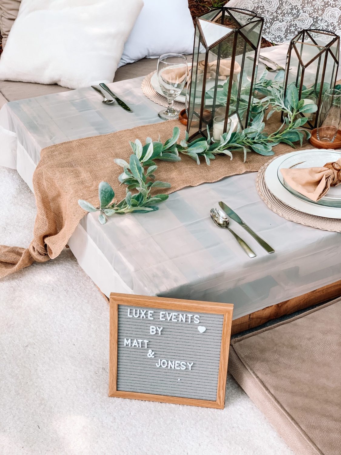 Our luxury picnic packages start at $225 for 2 guests, $25 for each additional guest, and include setup, décor, tableware, a light snack, and your choice of sparkling or flat water. Don’t forget to check out one of our specially curated playlist to assist in setting the mood.